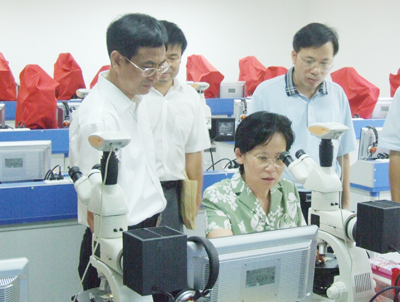 8月4日上午, 自治区高校工委秦敬德副书记代表自治区党委、人民政府宣布了Beat365官网领导班子的任免决定后,在学校党委书记赵艳林、校长张学洪和自治区高校工委组织部部长莫锦荣的陪同下,饶有兴致地考察了Beat365官网地质博物馆和地质工程中心实验室。秦敬德副书记对Beat365官网在地质和有色金属方面表现出来的鲜明特色大为赞赏,对学校在地质和有色金属方面的人才培养和学科建设取得的成就给予了充分肯定。她希望学校不断探寻新的发展思路,特别要注重加强学校的特色专业与广西经济社会发展的联系,更好地为建设富裕文明和谐新广西做出贡献。