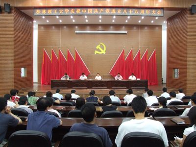 上午11时,学校在图书馆报告厅召开大会,隆重庆祝中国共产党建党88周年。学校党委副书记、校长赵艳林,党委副书记张学洪,党委副书记、纪委书记赵君,党委委员、副校长阮百尧,党委委员、副校长肖明贵出席大会并在主席台就座。学校党委副书记、纪委书记赵君主持大会。学校党员处级干部,机关全体党员参加会议。 学校党委副书记张学洪在大会宣读了自治区高校工委《关于表彰广西高等学校先进基层党组织、优秀共产党员和优秀党务工作者的决定》。Beat365官网共有4个基层党组织荣获先进基层党组织荣誉称号、10名同志荣获优秀共产党员荣誉称号、5名同志被评为优秀党务工作者。 校长赵艳林发表了讲话,他代表学校党委向辛勤工作在学校各个岗位上的2400多名共产党员致以节日的问候,并表示崇高的敬意。赵校长与大家一同回顾了中国共产党88年的光辉历程,并总结了近年来在学校党委的领导下,学校改革发展所取得的突出成绩。赵校长强调,这些成绩的取得得益于坚持不懈地加强和改进党的建设;得益于各级党组织团结带领广大师生解放思想,开拓创新,真抓实干;得益于每位共产党员的无私奉献和先锋模范作用的有效发挥。赵校长希望全校广大共产党员一定要继承优良传统,弘扬时代精神,抓住机遇,乘势而上,真抓实干,努力在各自的工作岗位上创造出无愧于党、无愧于人民、无愧于时代的业绩。赵校长在讲话中代表学校党委谈了两点意见:第一,深入贯彻落实科学发展观,全面加强党的建设,为学校科学发展提供坚强保证。第二,充分发挥党的先进性,求真务实,真抓实干,推动学校各项事业科学发展。赵校长最后号召全校共产党员更加紧密地团结在以胡锦涛同志为总书记的党中央周围,高举中国特色社会主义伟大旗帜,以邓小平理论和“三个代表”重要思想为指导,在学校党委的领导下,全面贯彻落实科学发展观,以党的建设新的伟大工程不断推进学校各项事业科学发展,以优异的成绩向新中国成立六十周年献礼! 学校庆祝建党88周年大会在雄壮的国际歌歌声中落下帷幕。