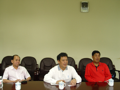 来访的雁山区领导与市国土资源局领导(左起:杨思情、廖桂生、何年养)
