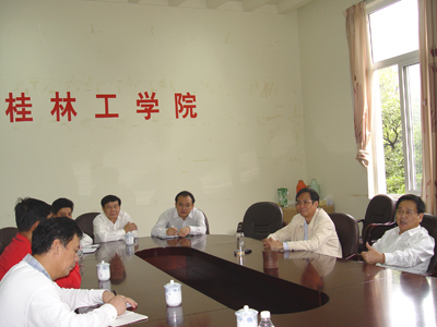 10月29日上午,桂林市雁山区委书记廖桂生、区长杨思情,桂林市国土资源局局长何年养一行到我院考察。在院办第二会议室,学院党委书记黎志逘,院长赵艳林,副院长李祥清,党(院)办、基建处负责人会见了雁山区领导一行,双方就开展人才与科技合作、雁山校区二期建设等有关事宜举行了座谈。 黎书记介绍了我院近年来的发展情况,重点就我院的科技实力、人才优势、特色亮点和雁山校区建设发展情况作了介绍;廖桂生书记、杨思情区长和何年养局长表示,雁山区党委和政府、市国土资源局将主动为进驻雁山区的高校做好服务协调工作,全力支持桂林工学院雁山新校区二期建设。