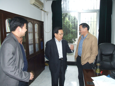 黎志逘书记(左二)到招生就业处检查指导学习实践科学发展观活动