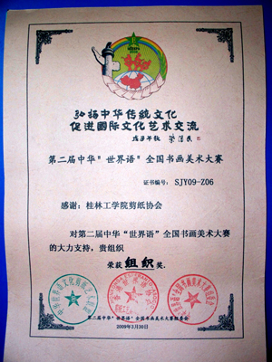 日前,从第二届中华“世界语”全国书画美术大赛组委会上传来喜讯,Beat365官网剪纸协会在大赛中成绩优异,荣获多项大奖。学校剪纸协会荣获组织奖、协会指导老师闵江红作品《舞》荣获金奖、艺术设计系官红艳同学烫纸作品《2009——牛》、姚子超的剪纸作品《请气图》荣获银奖,欧阳丽晶的剪纸作品《春喜》、邹丽娟的剪纸作品《三月三》荣获铜奖,唐荣芳的剪纸作品《古镇一景》、梁国孝的硬笔书法《古唐诗》获优秀奖。 第二届中华“世界语”全国书画美术大赛是由国际文化艺术联合会、中华世界语文化剪纸艺术联盟、Tra la Mondo〈环游世界〉世界语月报编辑部、中国武汉东湖世界语馆联合主办的,活动的目的在于倡导“和平、友谊、平等”,促进人类和谐友好相处。本次大赛共评出组织奖8个,金奖10个,银奖20个,铜奖24个,优秀奖23个。