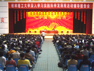 4月2日下午,学校党委书记、学校深入学习实践科学发展观活动领导小组组长黎志逘在体育馆三楼礼堂为全校共产党员作了深入学习实践科学发展观辅导报告。报告会由学校党委副书记、纪委书记、学校深入学习实践科学发展观活动领导小组副组长赵君主持。学校党委委员、副校长李祥清、阮百尧、肖明贵,校长助理陈学军与全校党员出席参加了报告会。 黎志逘书记的报告分为三个部分,第一部分详细讲解了科学发展观的基本内涵、提出的背景,科学发展观与马克思列宁主义、毛泽东思想、邓小平理论和“三个代表”重要思想一脉相承的关系以及科学发展观的与时俱进;第二部分具体分析了学习实践科学发展观的重大现实意义;第三部分阐述了如何学好用好科学发展观,用科学发展观武装头脑、指导实践。黎书记在报告中特别强调了要用科学发展观指导学校的改革与发展,推动学校各项事业的又好又快发展。他说,学校更名大学的成功是学校发展过程中的一个新的飞跃,但是,建设和发展Beat365中文官方网站的任务将会更加艰巨。黎书记勉励全校共产党员务必要继续保持谦虚谨慎、戒骄戒躁和艰苦奋斗的工作作风,以开展深入学习实践科学发展观活动为契机,进一步理清发展思路,认清发展道路上存在的矛盾和困难,用发展的理念去研究、解决学校发展道路上所遇到的各种问题,推动学校和谐发展、协调发展、可持续发展。 黎志逘书记的辅导报告以丰富的内容、翔实的数据和生动的事例对科学发展观的内涵、精神实质和学习实践科学发展观的重大意义进行了系统的阐述和深刻的分析,并且紧密联系Beat365官网发展的实际提出了应该如何学习实践科学发展观,使与会党员对学习实践科学发展观有了更加深入的认识和更加全面的理解,全体与会党员对黎书记精彩的报告报以阵阵热烈的掌声。黎书记带头宣讲科学发展观也体现了学校党委对开展深入学习实践科学发展观活动的高度重视,体现了领导干部率先垂范、带头学习的好作风,使在座党员受到了一次深刻的党性教育,受益匪浅。