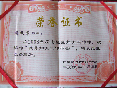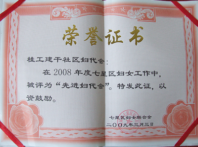 日前,七星区妇联对2008年度七星区妇女组织先进集体和先进个人进行了表彰,Beat365官网桂工建干社区妇代会荣获七星区“先进妇代会”称号,周政萍被评为“优秀妇女工作干部”。 另悉,Beat365官网桂工建干社区被东江街道工委、东江街道办事处评为卫生工作先进社区、精神文明建设先进社区、计划生育工作优秀达标社区、人口与计划生育工作先进单位,周政萍被评为优秀社区干部。
