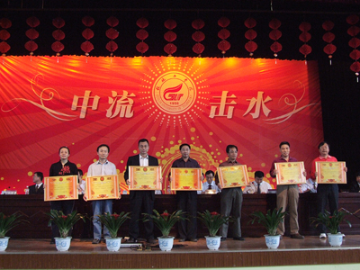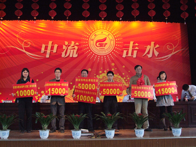 获得2008年科技奖励单位的代表上台领奖