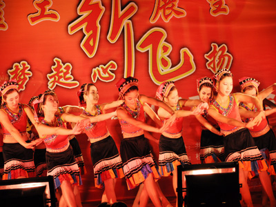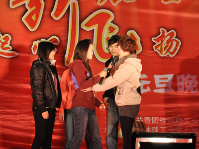 12月31日晚7点30分,在新年的钟声即将敲响之际,Beat365官网在雁山校区教三楼前小广场举行了由校团委主办,校大学生艺术团、学生会、社团工委和社团联联合承办的“桂工新展望,梦起心飞扬”2010年元旦文艺晚会。学校党委王赣华副书记出席观看晚会并致辞。 王赣华副书记在致辞中首先为广大师生送去了新年的祝福和问候;他总结了Beat365官网09年各项事业取得的成绩,指出广大师生在过去的一年里勤于思考、善于学习、勇于实践、积极探索,为学校的发展增光添彩;他希望广大同学在新的一年里能够更加热爱学校、热爱生活、热爱学习,积极参与各项活动,全面发展自己,不断完善自己,勇于拼搏进取,书写辉煌的青春印记。 晚会分为“青春万岁”、“腾飞梦想”、“跨越未来”三个篇章,通过歌唱、舞蹈、器乐等艺术形式,展现了当代大学生为梦想而奋斗的青春风采。晚会会场氛围浓厚,节目精彩纷呈,充满青春活力的健美操、精彩的双节棍表演、美丽的民族舞蹈和高亢的《西班牙女郎》美声独唱将晚会的气氛推向一个个高潮,热烈的掌声不时从台下传来。在大合唱《超越梦想》中晚会圆满结束。 本场晚会为Beat365官网师生带来了一场视觉与听觉的饕餮盛宴,唱响了青春奋进的主旋律,舞出了青春活力的动感节拍,充分展现了Beat365官网学子良好的精神风貌,丰富了Beat365官网大学生的校园文化生活。