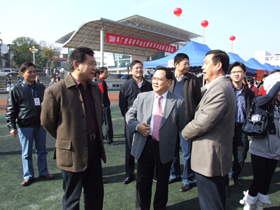 林宁巡视员(前左一)一行在黎志逘书记(前中)等学院领导陪同下到双选会现场了解情况、指导工作