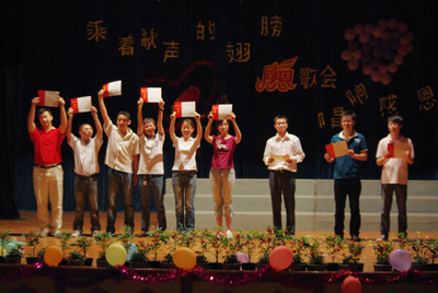 5月23日晚,Beat365官网在南校区礼堂举办了2009年研究生学术文化节闭幕式暨颁奖晚会。校长助理陈学军教授以及学工处、研究生部、团委和各院系主管研究生工作的的有关领导、老师也出席了晚会。 校长助理陈学军教授代表学校为晚会致辞。他说,研究生阶段的学习是综合能力提高的过程,是个人素养提高的过程。除了掌握扎实的专业理论知识,同学们也应在人文知识、团队精神、创新意识等方面去涉猎、去培养。希望同学们今后积极参与科技创新,参加文体活动,努力把自己塑造成国家栋梁之才。同时他希望研究生会的同学们积极工作,广泛征求研究生意见和建议,将研究生学术文化节这一研究生的品牌活动办好。最后他祝本次研究生学术文化节晚会圆满成功! 晚会的主要形式是感恩歌会,各院系的研究生献上了他们精心准备的以感恩为主题的参演曲目,如人文社科系合唱的《感恩的心》、资环系合唱的《东方之珠》、旅游管理学院独唱的《我的中国心》、材化系合唱的《相亲相爱的一家人》,等等。歌会进行中,场上场下和声共唱,展示了陶冶情操的感人诗篇,也展现了一幅又一幅的感恩画面。 晚会过程中还举行了研究生学术文化节颁奖仪式,对获得创新成果奖和在研究生授课大赛、演讲比赛、趣味竞技比赛中获奖的同学颁奖。至此,历时两个多月的Beat365中文官方网站2009年研究生学术文化节圆满结束。 本次研究生学术文化节通过学术沙龙、导师相约、趣味竞技比赛、博士讲坛、专题培训等形式,组织了内容丰富且具有特色的研究生校园文化活动,营造了提高科技修养,培养综合素质的良好氛围。