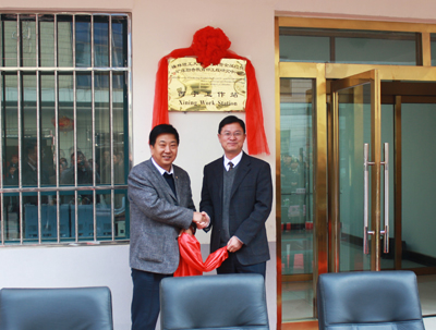 阮百尧副校长(右)和杨生德总工为工作站剪彩