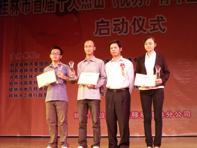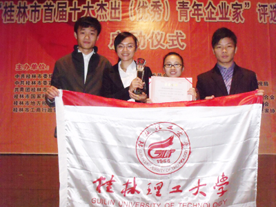 日前,在桂林市少年宫春天剧场隆重举行了桂林市创业文化节颁奖仪式暨桂林市十大杰出(优秀)青年企业家启动仪式,市委副书记束华、市人大常委会副主任汤杰、副市长巫家世等领导出席此次仪式。Beat365官网代表在桂林市首届大学生创业项目设计大赛上取得获得金奖1项,银奖2项,铜奖3项的好成绩。 为了激发和培养广大学生的创业意识、创业精神和实践能力,将创造能力转化为创业方案,本着“参赛为手段,普及为目的”的原则,学校积极鼓励学生自由组成优势团队,并加强对参赛学生的培训和指导,经过校内认真评选后,选拔了优秀作品推荐到组委会,取得了良好成绩。通过本次竞赛,在广大同学中进一步弘扬了创新精神、倡导了创业理念、促进了学习成果的转化,形成了良好的创业氛围。
