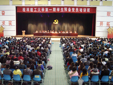 为认真贯彻落实党的十七大精神和实践科学发展观,帮助入党积极分子加深对党的基本理论和基本路线的理解,不断加强党性修养,Beat365官网自11月27日至12月12日举办了第一期学生预备党员培训班。本期培训班共培训党员1011名。培训期间,学员们积极参加党校各项教学活动,认真遵守党校各项规章制度,并开展了赴兴安红军长征突破湘江烈士纪念碑园的参观考察等党校活动。经过党校严格审核,最终有1009名学员顺利结业。会议宣读了《关于表彰Beat365中文官方网站第一期学生预备党员培训班“优秀学员”的决定》,授予张紫文等151名同学为学校第一期预备党员培训班“优秀学员”荣誉称号。在主席台前排就坐的领导为优秀学员颁发了荣誉证书。随后,优秀学员代表农芸、夏勇超、张萌萌作了激情洋溢的心得体会交流发言。学生党员代表、校学生会主席张紫文同学带领全体学员就“创先争优”活动作出了庄严承诺。