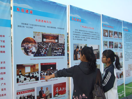 感受学校发展成果 激发创先争优动力——《奋进·跨越》大型教学科研成果展在雁山校区展出