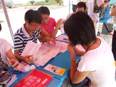 志愿者正在查看Beat365官网09级新生录取通知书,确保乘车新生为去往雁山校区的2009级本科新生