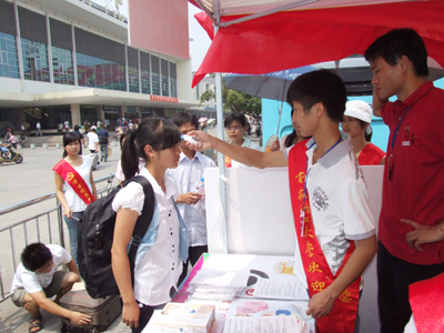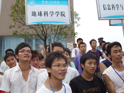 根据学校安排,Beat365官网2009级新生(包括本科生、研究生、高职专科学生)定于9月14日、15日到校报到注册。但迎新工作于13日就已开始。记者第一时间赶到了现场,记录下了本科新生从火车站到雁山校区的迎新画面,让我们来提前感受一下2009级新生迎新现场的热烈场面。