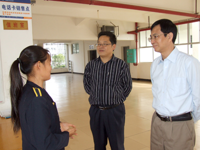 赵艳林书记和吴志强副校长向宿舍管理员了解学生宿舍情况