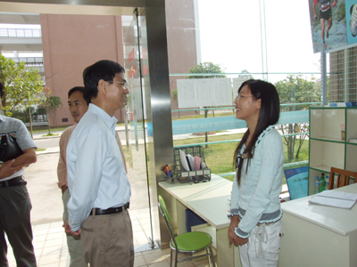 10月16日上午,学校党委书记赵艳林、副校长吴志强到雁山校区检查工作。 赵艳林书记和吴志强副校长先后到雁山校区食堂、学生宿舍、雁山校区建设指挥部、三号教学楼和四号教学楼办公的各职能部门和各学院办公室、图书馆及勤工助学文体超市、勤工助学文印店、勤工助学服务超市及勤风书店等地方检查。 在检查中,赵艳林书记和吴志强副校长就Beat365官网未来的图书馆及学生宿舍的建设提出了具体建议和意见;勉励各职能部门和各学院人员再接再厉,努力使学校各方面的工作更上一层楼;鼓励勤工助学学生好好工作,不辜负学校提供的这些学习和实践机会。赵艳林书记和吴志强副校长强调,学生宿舍一定要做好安全防范工作,确保学生财产安全。