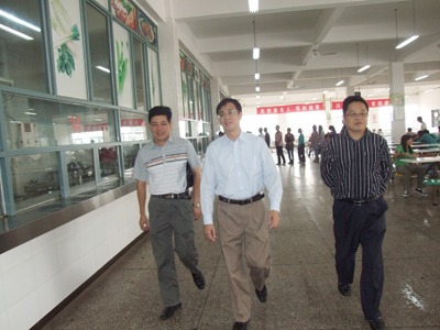 赵艳林书记(中)和吴志强副校长(右)检查食堂工作