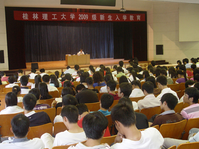 为了深入贯彻落实《中共中央国务院关于进一步加强和改进大学生思想政治教育的意见》精神,根据《Beat365中文官方网站新生入学教育方案》,学校于9月27-30日分别在屏风校区和雁山校区举行新生入学教育系列报告会,对Beat365官网2009级本专科新生进行了系统的入学教育。 在系列报告会中,校长张学洪为新生介绍了学校的校史校情,并作了题为《大学三问》的专题报告;党委副书记、纪委书记赵君以《明确历史使命、勇担时代重任、做一名全面发展的大学生》为题,对全校新生进行了党的基本知识和大学生廉洁教育;党委副书记王赣华以加强校风学风建设为主要内容,作了题为《适应人生新阶段,实现人生新跨越》的专题报告;副校长肖岳峰重点围绕民族团结和反邪教警示教育作了题为《警惕“独流”,抵制邪教,做民族团结的忠诚维护者》的专题报告;副校长阮百尧以“大学生规划教育”为内容作了专题报告。 另外,学校还对新生进行了教学管理制度、安全防范、疾病防控与心理健康等教育,使他们对学校有了更深入的了解和认识,为他们顺利完成从高中生到大学生的角色转变,尽快适应大学生活,确立自己的发展目标和人生方向,更好的融入大学生活打下良好的基础。