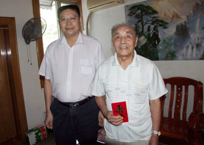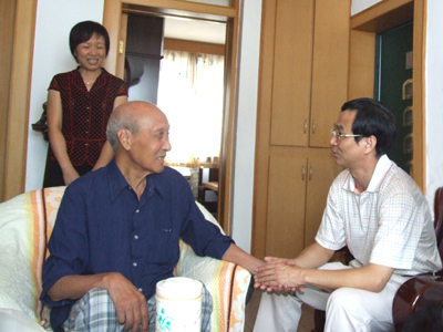 在祖国60华诞和中秋佳节来临之际,学校党委书记赵艳林,校长张学洪,党委副书记、纪委书记赵君,党委副书记王赣华,副校长肖岳峰、阮百尧、肖明贵、陈学军、吴志强等领导在党(校)办、党委组织部、人事处、工会、离退处和社区负责人陪同下分别慰问了建国前参加工作的Beat365官网离休老干部、老教师柳林、张泽湘、刘金声、高善玲、赵如海、杨永源、蒙民强、王遂昌、汪向臣、王瑛等同志,感谢他们为开创学校的基业所付出的艰辛努力和为学校建设与发展所做出的重要贡献,并向他们送上节日的祝福和问候,叮嘱他们保重身体,祝福他们佳节快乐,幸福安康!