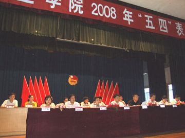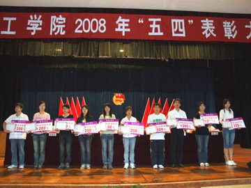 5月4日下午,在庄严雄壮的国歌声中,学院2008年“五四”表彰大会在南校区礼堂隆重开幕。学院党委副书记张学洪出席大会并发表了讲话。学院团委书记辛立章,学工部副部长叶昊,全院教职工团干部及来自各系院的学生代表参加了大会。大会由学院团委副书记李辉主持。 会上,学院团委书记辛立章宣读了《关于表彰学院2008年“五四青年标兵”的决定》,学工部副部长叶昊宣读了《关于颁发学院2008年“五四自强助学金”的决定》。随后,举行了颁奖仪式。全国优秀共青团员、“中国大学生自强之星”提名奖、中国大学生新东方自强奖学金获得者朱宗强和新东方西部特困大学生专项助学金获得者高招连,学院2008年度“五四”青年标兵获得者文夏连等10名同学,学院2008年度“五四”自强助学金获得者黄艳丽等20名同学先后上台领奖,张学洪副书记和在主席台前排就座的同志为他们颁发了奖金和荣誉证书。学院2008年度“五四”青年标兵代表谢妍同学、学院2008年度“五四”自强助学金获得者代表白亚飞同学先后作了发言。 张学洪副书记首先代表学院党委向全院广大团员青年致以亲切的节日问候,向受表彰的同学表示热烈的祝贺。张副书记在讲话中指出了“五四”运动的伟大意义及“五四”精神对于一代又一代中国青年积极投身于社会主义革命、建设和改革发展事业的重大影响,并充分肯定了学院建校50多年来,在学院党委和上级团组织领导下,学院历届团委带领广大团员青年,以实际行动大力传承“五四”精神,积极投身学院的各项建设所取得的成绩和为学校所做出的贡献。他对全院广大同学提出了三点要求:一要胸怀祖国,勇担责任。 二要加强学习,增强本领。三要引领潮流,树立新风尚。“青春是充满生命力和创造力的灿烂华年,中华民族伟大复兴的神圣使命,召唤着当代青年继往开来,勇往直前。”最后,张副书记号召全院广大青年学生,要肩负起时代赋予的神圣使命,大力弘扬“五四”精神,全面落实科学发展观,以昂扬的斗志、不懈的努力,在学院的建设和发展中创造出更加骄人的青春业绩! 在充满青春活力、欢快而又激昂的中国共产主义青年团团歌声中,表彰大会圆满结束。