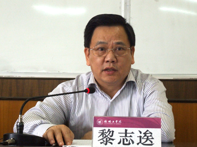 在主席台就座的学校领导(左起:张学洪、黎志逘、赵艳林、赵君)