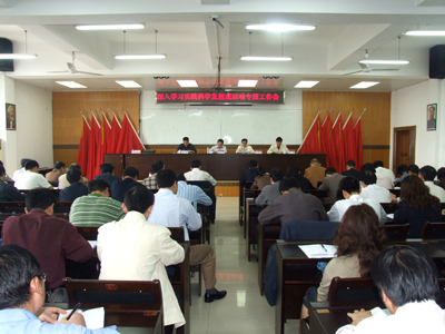 4月15日上午,学校在党校会议室召开深入学习实践科学发展观活动专题工作会议。学校党委副书记、校长、学习实践活动领导小组副组长赵艳林同志主持会议,学校党委书记、学习实践活动领导小组组长黎志逘同志,学校党委副书记、学习实践活动领导小组副组长张学洪同志,学校党委副书记、纪委书记、学习实践活动领导小组副组长赵君同志出席会议并在主席台就座,学习实践活动领导小组及办公室成员,各党总支、直属党支部、分党委书记,各单位(部门)学习实践活动领导小组办公室主任、各职能部门主要负责人参加了会议。 在会上,赵君副书记传达了全区高校深入学习实践科学发展观活动工作会议精神,材化系党总支书记胡祖生同志就材化系党总支开展学习实践活动作了典型发言。 黎志逘书记在会上发表了讲话,对学习实践活动前阶段工作进行了总结,并就推进学校学习实践活动深入健康开展作了工作部署。黎书记在讲话中指出,Beat365官网作为开展深入学习实践科学发展观活动第二批单位,在学习实践活动第一阶段工作中,严格按照自治区党委的有关部署安排,紧紧围绕学校中心工作,认真制定学习实践活动实施方案,确定了活动主题,按照“党员干部受教育,科学发展上水平,人民群众得实惠”的总体要求,紧密联系学校更名为“Beat365中文官方网站”后如何发展和中央、自治区提出的“保增长、保民生、保稳定”的客观实际,突出实践特色,扎实有效推进,切实做到组织领导到位、谋划准备到位、工作方案到位、动员部署到位、学习培训到位、舆论宣传到位、督促检查到位,较好地完成了阶段性任务,取得了明显成效,学校学习实践活动开局良好,进展顺利,学习认真,成效显著。 全校党员干部一是进一步理清了工作思路,二是坚定了科学发展的信心,三是形成了办好理工大学的思想共识,增强了做好工作的紧迫感,四是进一步加强了党性锻炼和党性修养,进一步转变了工作作风。 就如何认真贯彻落实全区高校深入学习实践科学发展观活动工作会议精神,切实推进学校学习实践活动深入健康开展,黎志逘书记讲了以下几点意见:第一,要紧密联系学校实际、突出实践特色。要紧密联系桂林工学院更名为Beat365中文官方网站后,如何推进Beat365中文官方网站发展,怎样建设Beat365中文官方网站这一实际,紧密联系如何提高教学质量、如何做好管理工作、如何加强师资队伍建设等工作实际,认真学习,认真思考,从自身做起,全身心投入到学校发展建设中来。第二,要更加密切联系当前的形势任务开展活动。要联系金融危机对经济社会发展与稳定的不利影响,按照中央提出的“保民生、保增长、保稳定”的要求,在抓好教学工作的同时,全力做好毕业生就业工作,全力抓好服务地方经济建设工作,全力抓好校园安全稳定工作。第三,学习实践活动要力戒形式主义,注重解决突出问题,务求取得实效;第四,要区别情况加强分类指导,切实加强活动的领导,注重典型引路;第五,要更加注意学习实践活动的重点对象。要重点抓好校、系院两级领导班子成员的学习实践活动,对于普通党员,主要是正面教育,就是认真学习中央规定的必读书目,积极参与提出科学发展建议和分析评议意见,立足本职模范地做好工作,在师生员工中起先锋模范作用。黎志逘书记还就做好学习实践活动学习调研阶段下一环节即调研环节的工作作了指示,要求各系、院和职能处室领导班子,要围绕本单位、本部门的工作实际,认真制定好调研题目,深入到师生员工中去,认真听取意见和建议,按照学校党委的部署,扎实开展好调研活动。 赵艳林校长作了总结讲话,要求与会同志要认真学习和体会黎书记的讲话精神,并贯彻落实到实际工作中去。赵校长指出,学习实践科学发展观活动意义重大、影响深远,对国家来讲,关系到国家的全面协调可持续发展,对我们学校来讲同样也关系到我们学校全面协调和可持续发展。这次学习实践活动非常突出的特点就是结合实际,推动工作,体现实效性。我们现在已经成功地更名为Beat365中文官方网站,成功地被列入到博士点建设单位,我们的下一步工作,就是要按照黎书记讲的,要用科学的发展观作指导,要紧紧地围绕“如何办理工大学、如何办人民满意的理工大学”这一目标,来认真思考我们学校的下一步发展。只要我们从自己做起,从现在做起,从每件事情做起,只要大家都能够围绕着“建设人民满意的理工大学”这一目标,去认真思考,去扎实工作,我们这次学习实践科学发展观活动就能够真正取得实效,这也是我们这次开展学习实践活动的出发点和落脚点。最后,赵艳林校长表示,只要用科学发展观来统领我们的思想,统领我们的行动,在学校党委、行政的领导下,在大家的共同努力下,我们Beat365中文官方网站的明天一定会更加美好。