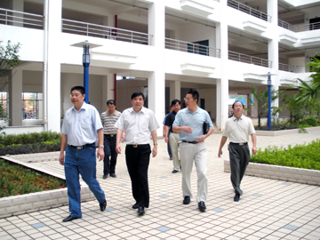 7月4日上午,自治区高校工委书记、教育厅厅长高枫带领教育厅办公室主任吴国友、财务基建处处长梁家斌等部门领导到我院雁山校区调研。学院党委副书记张学洪,副院长、雁山校区建设指挥部指挥长肖明贵,院长助理、雁山校区建设指挥部副指挥长陈学军等热情接待了高枫厅长一行。 高枫厅长一行沿着校园主干道考察了雁山校区的整体情况,每过一处,高枫厅长都认真地听取情况介绍,全面了解了雁山校区一期工程中已经建设好和正在建设的工程、二期工程征地和建设准备、后期建设资金筹集、新校区教学和管理、与地方政府和周边农民的关系等方面情况,了解了目前新校区建设面临的困难。高枫厅长一行还到教学楼察看了建筑物情况,到安全监控室了解了校园安全保卫工作情况。高枫厅长肯定了我院雁山校区建设取得的成绩,对我院利用自身的学科专业优势建设新校区表示赞赏,还指示相关部门支持和帮助我院解决建设中遇到的困难和难题。 学院参加接待高枫厅长一行的还有党(院)办主任莫坷、雁山校区建设指挥部副指挥长陈慕杰、党委宣传部副部长钟克庆和雁山校区建设指挥部的部分工作人员。