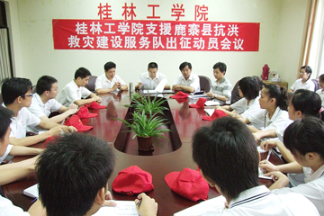 6月24日上午,我院召开支援鹿寨县抗洪救灾建设服务队出征动员会议。出席动员会的领导有学院党委副书记张学洪,院长助理、土木系系主任陈学军,党办(院办)主任、土木系党总支书记莫坷,土木系党总支副书记代武社。16名服务队员和带队老师参加会议。会上,张学洪副书记为即将出征的服务队授旗。 土木系党总支书记莫坷、系主任陈学军在会上都强调,服务队一切行动要听从当地党委、政府的安排,把这次活动当作强化自己专业知识、全面提高自己能力和素质的绝好机会,克服一切困难,全身心投入,以实际行动实践我院为地方经济建设服务的宗旨。 张学洪副书记强调,服务队一定要注意安全,只有在保证安全的前提下才能更好地开展工作;要以高度的责任感和使命感完成好这次任务,为广西、为鹿寨县的抗洪救灾作出应有的贡献。 我院支援鹿寨县抗洪救灾建设服务队已于6月24日中午出发。本次服务队成员以我院土木系城市规划专业学生为主,本次活动将重点对鹿寨县受洪灾严重破坏的村庄进行地形现状调研分析和规划。