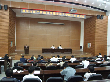 李祥清副院长在讲话中指出,作为地处桂林的高校,我院认真落实自治区党委、自治区人民政府、自治区教育厅和桂林市的有关部署和要求,全力做好火炬接力广西传递活动期间学院的各项工作,积极落实上级和桂林市有关指示,全力做好参加观看活动的500名志愿者的服务和文明观看工作,全力维护校园的安全稳定,为确保奥运火炬在桂林和广西的顺利有序传递做出了应有贡献。