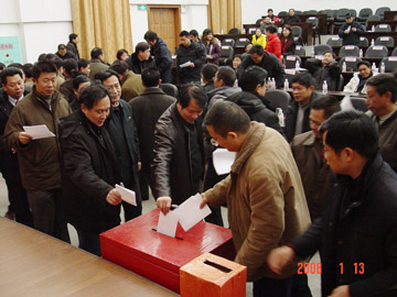 1月13日全天,学院在图书馆报告厅举行了2007年度干部述职测评大会。学院正处级干部和主持工作的副处级干部从思想政治素质、组织领导能力、工作作风、工作业绩和廉洁自律等方面进行了年度述职,大会以现场无记名方式对述职干部进行了测评。大会由党委组织部部长陈贵英主持,学院党委副书记张学洪,党委副书记、纪委书记赵君,副院长李祥清、阮百尧、肖明贵出席了会议,全体中层干部和各单位、各部门的群众代表参加了会议。 学院述职测评工作领导小组组长张学洪副书记对此次大会进行了总结,认为这是一次成功的大会、团结的大会,被测评干部高度重视,认真总结,评委保持了客观公正。同时希望被测评干部讲团结、讲正气,正确对待测评工作。