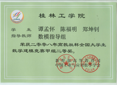 附:2008年全国大学生数学建模竞赛桂林工学院获奖名单 点击浏览该文件