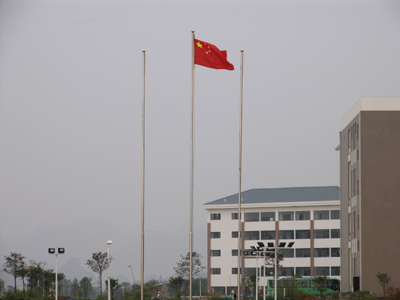 鲜艳的五星红旗高高飘扬在学院雁山校区上空