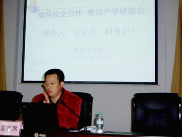 11月22日,在自治区教育厅组织下,“2007年全区高校科研工作会议暨全区高校三对创新行动计划—忻城启动仪式”在忻城举行。区内28所高校分管科技的校领导、科研处处长和有关专家、教授等,聚集忻城,启动了今年的全区“三对创新行动计划”。 自治区教育厅副厅长黄宇介绍,今年是实施“三对创新行动计划”(即学校产学研的科技工作要转到对应一个市(县)、一家企业(研究院所)、一个行业、一个社区,切实开展一对一、一帮一、一扶一的“产学研合作对子”、“帮扶对子”和“培训服务对子”)的第二年,该项行动有利于促进高校与企业、科研院所、县(市、区)及其行业的全面联合与协作,形成高校全方位服务和支撑广西经济和社会发展的局面。 黄副厅长宣读了关于表彰2007年开展“三对创新行动计划”先进集体的决定。并表示,自治区教育厅将继续深入实施“三对创新行动计划”,让各高校以各种灵活多样的方式将科技知识应用到企业、厂矿、乡镇、农村,积极参与和支持广西各个领域、各个层面的科技创新和科学普及工作,为建设富裕文明和谐新广西作出新的贡献。自治区科技厅蒋和生副厅长出席大会并致辞。 我院获得了2007年全区高校“三对创新行动计划”先进集体的荣誉。学院党委副书记张学洪教授代表学院领奖并在大会上作了“加强校企合作,推动产学研结合”的主题发言,张副书记从“我院二〇〇七年科技工作情况、近年来开展三对创新行动计划情况、存在的问题和今后设想”三个方面介绍了我院在科技创新和科学普及工作,为建设富裕文明和谐新广西所作出的新的贡献。同时张副书记还介绍了我院“三对创新行动计划”下一步的工作要点:继续加大科研基础创新平台建设,促进科技资源共建共享,加大自主知识产权和科技成果的研发与转化,整合校内外科技资源优势,狠抓重大项目的申报工作,紧密联系地方经济发展要求,使三对创新行动计划成果再上新台阶。