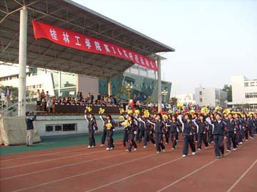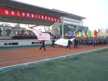 11月23日上午8时,我院第36届田径运动会在屏风校区运动场隆重开幕。学院党委委员、院长助理、人事处处长华桂林主持开幕式,学院院长赵艳林,副院长李祥清、阮百尧,院长助理、土木系主任陈学军,院长助理、南宁分院院长顾炳根,各职能部门负责人及各系、院党总支书记出席了开幕式并在主席台就座。 开幕式上,来自各系院的15个方阵队迎着绚丽的朝阳,迈着整齐的步伐、喊着响亮的口号精神抖擞地列队走过主席台。运动员入场完毕后,进行了升国旗仪式。 李祥清副院长致开幕词。他回顾了我院近几年来体育事业所取得的成绩,肯定了学院体育工作对促进学院各项事业的又好又快发展所做出的重要贡献。他希望全体运动员、裁判员和工作人员在本次运动会上要继承和发扬顽强拼搏的精神和良好的体育道德风尚,按照“公开、公正、公平”的竞赛原则,坚持重在参与、重在学习、重在提高的原则,进一步弘扬“艰苦创业、敬业奉献、团结协作、开拓创新”的桂工精神,努力超越自我,赛出风格,赛出水平,高标准、高质量、高水平地举办好本次运动会,夺取运动成绩和精神文明的双丰收。 外语系05级学生赵小丽代表全体运动员宣誓,表示要坚持重在参与、重在学习、重在提高的原则,不断超越自我,勇创佳绩。体育教学部李锋老师代表全体裁判员宣誓,裁判员会秉着“公开、公正、公平”的竞赛原则,确保运动会顺利召开。 开幕式的最后一项是广播操比赛。各参赛队伍统一着装,动作整齐,精神饱满,充分展现了当代大学生的青春风采。 最后,赵艳林院长宣布学院第36届田径运动会开幕。数风流人物,且看桂工赛场健儿。接下来的运动会各项比赛将会更加精彩。预祝健儿们在运动会中勇创佳绩,预祝本届运动会圆满成功。