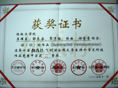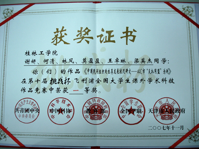 11月19日,第十届“挑战杯”全国大学生课外学术科技作品竞赛在天津市体育馆闭幕。我院参赛的五件作品取得优异成绩,获得一等奖一项,二等奖一项,三等奖三项,总分180分,位列广西参赛高校首位,这是我院学生参加这项赛事10年来取得的新突破和最好成绩。