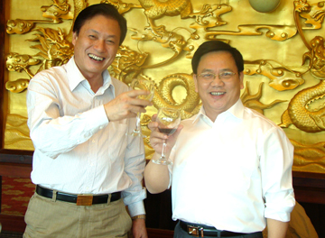 黎志逘书记(左)和李阳通董事长(右)共举合作之杯