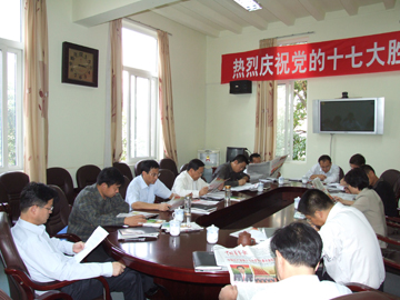 10月22日上午,学院领导与相关部门负责人及工作人员一起收看了十七届中央政治局常委同中外记者见面特别节目。下午,学院党委又召开了党委中心组学习讨论会,认真学习胡锦涛总书记在十七大开幕式上的报告,并结合学院的实际情况进行了热烈讨论。