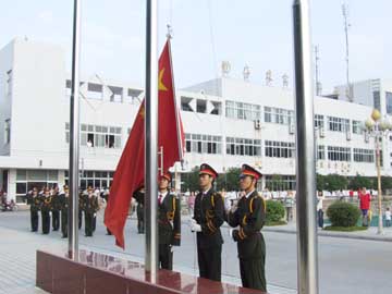 在秋高气爽,桂花飘香的金秋时节,我们伟大的祖国迎来了她58周岁的华诞。10月1日,我院在雁山新校区和屏风校区举行了隆重而庄严的升国旗仪式,与全国人民一道共同庆祝这一盛大节日。雁山校区升旗仪式由学工部(处)部(处)长熊英主持,屏风校区升旗仪式由学工处副处长张雷主持。 学院党委副书记、纪委书记赵君,学院党委委员、人事处处长华桂林出席了雁山校区的升旗仪式。参加雁山校区升旗仪式的有学院党委宣传部、统战部部长于海平,院团委书记辛立章,各系、院党总支副书记,07级新生班主任、辅导员及雁山校区2007级本科新生。上午8:00,升旗仪式正式开始。由雁山校区新生组成的升旗班和护旗队迈着矫健整齐的步伐进入广场。伴随着庄严雄壮的国歌,鲜艳的五星红旗迎着朝阳冉冉升起,全体师生向国旗行注目礼。迎着晨风,五星红旗高高地飘扬在了雁山校区的上空,全体师生一起唱起了《歌唱祖国》。 赵君副书记在雁山校区升旗仪式上发表了讲话。他首先回顾了我们伟大祖国曾经拥有的辉煌和近代中国的屈辱历史,历数了中华人民共和国成立以后所取得的一个又一个举世瞩目的伟大成就,指出了“没有中国共产党,就没有新中国;只有中国共产党,才能救中国,才能够发展中国”这一颠扑不破的真理。赵君副书记希望新生们要牢记在开学典礼暨军训开训典礼上的誓词:牢记历史使命,志存高远,立志成才;恪守社会公德,仁爱互助,勇于担当;崇尚科学理性,明辨是非,追求真知;笃行勤学深思,奋发有为,完善自我;秉承优良传统,明礼修身,心怀感恩;不忘家国期盼,奉献社会,报效祖国!要继承和发扬桂工艰苦奋斗的优良传统,树立远大理想,严格要求自己,珍惜美好的大学时光,时刻牢记学习,遵守校纪校规,把自己塑造成为德才兼备的优秀人才,不辜负父母的殷殷期盼,用优异的成绩报答父母的养育之恩;为实现学校既定的发展目标、开创学校美好的明天贡献自己的力量,从新的起点开始,从现在开始,以崭新的风貌、积极的心态和昂扬的斗志迎接新的挑战,创造新的辉煌!