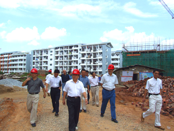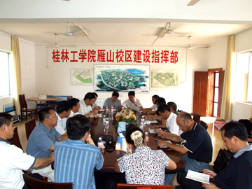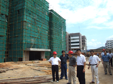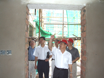 7月18日上午,学院党委书记黎志逘带领学院相关职能部门负责人到雁山校区检查一期工程第二批项目建设情况并对下一步工作做了指导。同行的还有学院党委副书记、纪委书记赵君,院长助理、人事处处长华桂林。在雁山校区值班的学院副院长、雁山校区建设指挥部指挥长肖明贵,院长助理、雁山校区建设指挥部副指挥长、土木系主任陈学军,基建处副处长刘宜河一起陪同黎书记一行检查并介绍了建设基本情况。 黎志逘书记带领大家分别到正在建设的学生宿舍、教学楼、科技楼察看在建情况,了解建设进度,他特别强调要保证安全第一、质量第一、速度第一。在雁山校区建设指挥部会议室,黎书记在听取了陈学军副指挥长对建设情况的介绍和各部门对雁山校区下一步工作的计划和安排后认为,雁山校区建设责任重大,使命光荣。他强调指出,一是对全部建设工程量要有科学、准确的估量;二要确定目标,落实任务,制订措施;三要进行任务分解,责任到人;四是突出重点,兼顾全盘,重点项目与配套工程要同步进行;五是各部门要围绕自身任务紧密配合。黎书记最后要求大家,要按照学院党委的部署和学校的既定目标,发扬特别能战斗的吃苦耐劳精神,增强责任感和使命感,顾全大局,齐心协力,同舟共济,全面做好雁山校区建设各项工作。