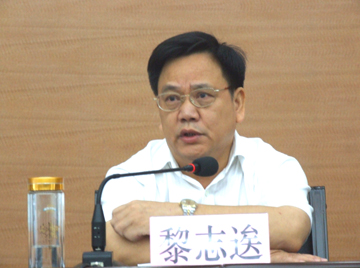 在主席台就座的领导(左起:肖明贵、张学洪、黎志逘、赵艳林、阮百尧、华桂林)