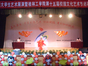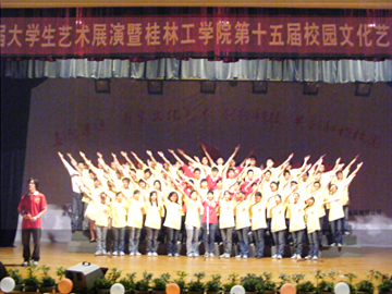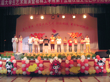 正值全国人民以各种方式支援四川地震灾区的时候,广西第二届大学生艺术展演暨桂林工学院第十五届校园文化艺术节闭幕式颁奖晚会于5月17日19:30,在学院屏风校区南校区礼堂隆重举行。这不仅是一场“喜迎奥运,彰显文化艺术;创新科技,共创和谐校园”的晚会,更是一场大型的关爱活动,参加晚会的学院领导和各系(院)领导、学工干部带头,向我院来自地震灾区的91名学生伸出了援助之手,表达了关爱之情。 学院党委张学洪副书记首先为闭幕式颁奖晚会致辞,他在肯定了本届校园文化艺术节可喜成果的同时,对当前四川的灾情和受灾的人们表达了深切的关心,并号召广大师生与我院来自地震灾区的91名同学同舟共济,共度难关,向他们伸出援助之手,奉献自己的一片爱心。随后,一首《爱,因为在心中》大合唱拉开了晚会的序幕。一时间,爱的情绪在全场观众的心中激荡。 晚会共分为奥运中国、和谐校园、扬帆起航三个篇章。演员们精心准备的节目精彩纷呈,引人入胜:慷慨激昂的《我骄傲,我是中国人》朗诵再现了中华儿女的一片赤诚爱国之心,尤其表现了众志成城、万众一心抗击震灾的意志和决心;歌曲《黄种人》表现的是中国人的一片豪情;舞蹈《摆啊摆》让人的思绪也随之飘向遥远的远方,飘向美好的未来;蕴含着吉祥如意的舞蹈《格桑梅朵》在传神地把藏族少女的风姿展现得淋漓尽致的同时,也表达了对四川震灾地区人民的深深祝福;校园短剧《永不放弃》表现了大学生永不言弃的青春风采,深深地感动了在场的每一个人。此外,来自艺术团的街舞表演和来自博文管理学院的变脸节目更是点燃了全场热情,博得现场阵阵喝彩。 激情四溢的晚会现场还进行了捐款活动,在张学洪副书记的带领下,老师和同学们为学院91名来自地震灾区的同学献上一份爱心。学院领导及老师要用关怀和慰问、广大同学们要用关心和祝福,帮助来自地震灾区的同学克服困难,早日走出阴影,度过难关,重新过上幸福美满的生活。在节目演出中,同学们还纷纷捐款。截至晚会结束,捐款金额已达5500余元。 晚会还穿插了颁奖环节,领导嘉宾为本次校园文化艺术节系列活动中获奖的单位及个人进行了颁奖,一张张奖状见证着校园文化艺术节走过的每一步,见证着广大同学在文化艺术的世界里每一刻的精彩。晚会最后,各节目演员及全体工作人员一起上台合唱《We are ready》,正如歌曲所唱“面对未知的挑战,我们已作好准备,面对未来,我们蓄势待发”。在欢快而振奋人心的歌声中,礼炮齐鸣,礼花齐放,广西第二届大学生艺术展演暨桂林工学院第十五届校园文化艺术节闭幕式颁奖晚会在桂工学子对奥运的殷切期盼中、对灾区人民及身边来自灾区的同学的深情祝福中、对祖国未来满怀希望中圆满结束。 一首首歌、一支支舞,一声声豪迈、一句句柔情,桂林工学院第十五届校园文化艺术节闭幕式晚会不仅给我们提供了一道视觉盛宴,它还谱写了校园的和谐之曲,奏响了校园文化艺术的青春之歌,至此,历时一个月的广西第二届大学生艺术展演暨桂林工学院第十五届校园文化艺术节在希望和梦想中划上了圆满的句号。 此次活动由共青团桂林工学院委员会主办,桂林工学院学生会、大学生艺术团共同承办。出席本次晚会的嘉宾有:学院党委张学洪副书记、学院团委辛立章书记、学院党委宣传部钟克庆副部长、学生工作处叶昊副处长,各系(院)党总支副书记、分团委书记,桂林各高校学生会代表、社团工作委员会副书记、大学生社团联合会理事长以及各系(院)学生会主席。 校园文化艺术节是我院两年一届的大型系列活动,它不仅是对同学们文化艺术水平的一次大检阅,也是对我院素质教育开展情况的一次大检阅。在学院“两申”工作紧锣密鼓地进行的同时,校园文化艺术节的开展为展现我院学生积极进取、健康向上的精神风貌提供了广阔的舞台。而本届校园文化艺术节营造的和谐氛围又将在对四川震灾的关爱中不断地延伸着。