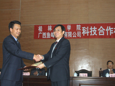 12月21日,我院与广西鱼峰集团有限公司的科技合作框架协议签约仪式在学院图书馆报告厅举行。学院院长赵艳林与广西鱼峰集团董事长韦宁分别代表双方在合作协议上签字。仪式上,合同总价达75万元的“水泥磨多重分选研磨节能技术应用”项目同时正式启动,学院材料与化学工程系陈平教授和广西鱼峰集团陆海总工程师签署了项目合同。仪式后,学院党委书记黎志逘和广西鱼峰集团董事长韦宁共同为校企共建的工程技术研究开发中心揭牌。校企双方的合作与发展由此开启了崭新的一页。 学院党委书记黎志逘在签约致词中介绍了学院改革与建设的成绩。他指出,近几年,学校在教学、科研、管理、学科建设、师资队伍建设、人才培养、社会服务等方面取得了显著的成绩,办学规模、办学质量和办学效益显著提高,各方面工作取得了长足进步;学校现有的学科专业中有60%属于广西工业化、城镇化建设和北部湾经济开发的重点领域,在为广西培养有色金属开发和利用、地质灾害防治、防灾减灾工程资源节约和环境保护、材料科学与工程城镇化建设等高级工业人才方面,不仅具有区内其他高校难以替代的特殊作用,而且在培养经济管理和旅游管理高层次专业人才和社会服务方面也具有很大优势。他还特别介绍了学校的材料与化学工程学科目前已经拥有一支较强的科研队伍、较好的科研技术条件和较高的研究实力,并在全区享有较高的声誉。黎志逘书记在发言中指出,广西鱼峰水泥集团作为国家重点扶持和华南地区最具影响力的水泥行业著名企业和广西重点企业,以其优异的质量和品质享誉海内外,具有很强的研究开发能力和市场拓展前景,能够与广西鱼峰集团在科技研发、人才培养、员工培训等方面开展合作,是充分发挥校企双方的优势和特色,加强学校与企业合作,教学与生产结合,校企双方互相支持、互相渗透、双向介入、优势互补、资源互用、利益共享,实现技术创新、管理创新,教育与生产可持续发展的重要途径,也是推动广西水泥行业产学研结合的良好典范,将为我们校企双方更好地发展提供良好机遇和发展空间。 广西鱼峰集团总经理杨义在随后的致词中说到,科学技术是第一生产力,企业间的竞争,最终是由产品背后所凝聚的技术支撑决定的,谁占领了技术制高点,谁将会是全球经济危机中生存下来的强者。水泥是一项传统产业,通过和桂林工学院合作,用高新技术改造和提升水泥传统产业,将是鱼峰公司在未来的市场竞争中打造核心竞争力的有力方式。桂林工学院作为广西教育科技战线的主力军,具有强大的科技优势、人才优势和创新优势。广西鱼峰集团期待以签署框架合作协议为新的起点,与桂林工学院一道把握产学研合作创新的关键环节,不断提高产学研合作创新层次和工作水平,使桂林工学院越来越多的科研成果在鱼峰生根发芽、开花结果。鱼峰集团将竭诚相待、竭尽所能,努力提供产学研合作一流的环境、一流的服务和一流的发展空间,争取把鱼峰集团和桂林工学院的产学研合作建设成广西校企合作的典范。 签约仪式由学院党委副书记张学洪主持。仪式签订之前,赵艳林院长还向广西鱼峰集团董事长韦宁、总经理杨义颁发了我院客座教授聘书。在主席台上就座的学院副院长阮百尧、院长助理华桂林、党(院)办主任莫坷、材料与化学工程系主任韦春,广西鱼峰集团有限公司技术研究中心副经理李异胜、办公室副主任李绍新,以及参加仪式的学院各系(院)党总支书记、主任、院长,分管科技工作的副主任,有关职能部门领导,材料与化学工程系的教师和学生代表,一起见证了签约。
