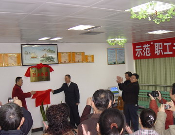 张学洪副书记、张强副主席为示范“职工书屋”揭牌