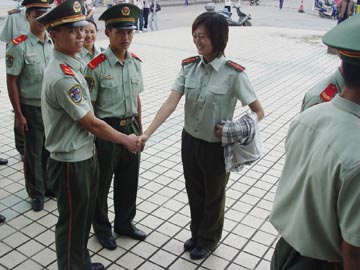 2006年9月14日下午,桂林工学院2006级军训承训部队武警桂林市支队官兵进驻我院。 5点,军训团各连连长和指导员在体育馆门口参加见面会。学院军训领导小组组长李祥清副院长对官兵的到来表示欢迎。军训团团长吴登培中校在见面会上作了简要讲话。各连连长、副连长和指导员进行了亲切交谈,分别就各连训练场地和学员等问题交换了意见。