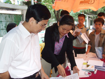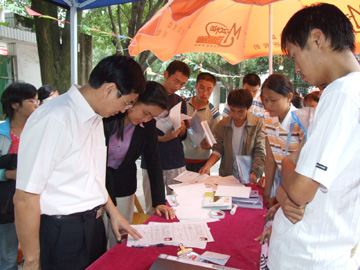 学院高度重视2006年新生入学“绿色通道”工作。为保证家庭经济困难学生享受平等受教育的权利,不让一个勤奋而有志的2006级新生因贫困而辍学,确保我院“绝不能让一个学生因贫困而失学”目标的实现。9月12日下午,赵艳林院长、张学洪副书记来到新生入学“绿色通道”现场,询问、检查和指导工作,切实为贫困学生解决实际问题。 据悉,在2006年新生中,我院对因家庭经济困难而一时凑不齐学费的学生,予以通过“绿色通道”先办理入学手续,对交完学费后无生活费的新生发放了临时生活补助,为经济困难新生积极联系助学贷款,同时,还对家庭经济特别困难的新生予以减免学费。