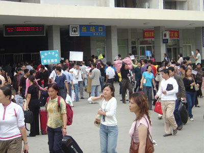 为了使桂林工学院的新生有“宾至如归”的感觉,桂林工学院学生工作部(处)特地组织勤工助学的学生们组成迎新外接组,于9月11日6:00到9月12日晚上12:00,在桂林火车站和桂林汽车站设点迎新。为了保证外接工作的顺利进行,学生工作部(处)思想教育科白永生科长、学生工作部(处)郝文佳和院团委张瑞在9月10日下午专门组织外接同学在学工处会议室召开会议,对外接工作期间的值班、注意事项等进行了细致而仔细的安排,尤其是强调每一位外接的同学要以最热情的态度迎接每一位新生和家长的到来。另外还积极与学院后勤集团联系安排外接车辆,学院共派出6辆大巴进行火车站到学院的来回接送。