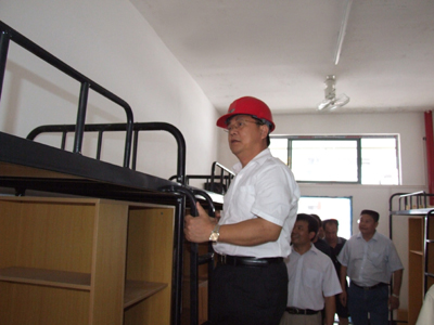 9月23日下午,学院党委书记黎志逘到雁山校区检查指导工作。 在学院党委副书记张学洪,党委副书记、纪委书记赵君,学院副院长、雁山校区建设指挥部指挥长肖明贵,党委委员、院长助理华桂林,院长助理、雁山校区建设指挥部副指挥长陈学军和各有关职能部门负责人的陪同下,黎书记实地检查了今年竣工的新生宿舍楼和已经开始启用的雁山校区二楼食堂。随后,黎书记在雁山校区建设指挥部会议室主持召开会议,听取了肖明贵副院长关于雁山校区建设工作情况的汇报,并就进一步做好雁山校区建设工作作了指示。黎书记要求,要认真周密作好学生入住雁山校区的工作安排,细致地做好各项后勤保障工作,各有关部门要有切实可行的工作方案,做到万无一失,让社会满意、学生满意、家长满意。
