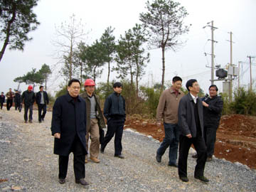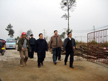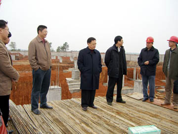 2006年2月14日,正当农历腊月二十七,家家户户都洒扫居室、购买年货,准备迎接并欢度中华民族最隆重的传统节日——春节。学院党委书记黎志逘、院长赵艳林于上午10时来到雁山校区施工现场,视察新校区建设的施工进度并带来水果等慰问品对现场施工人员表示节日的慰问。 雁山校区建设指挥部指挥长肖明贵副院长,副指挥长陈慕杰,工程部主任刘宜河以及新校区建设指挥部的工作人员陪同书记、院长视察了已完成土方、桩基浇注和回填等全部基础工程的1#学生食堂、4#系部教学楼、5#公共教学楼工地,和已完成部分地基土方工程的1-7#学生公寓楼工地等近10万平方米建筑面积的首批施工工程。黎志逘书记一再强调说,百年大计,质量第一,一定要保证质量。中央提出要又好又快,我们的新校区工程也要做到又好又快。黎书记对施工方负责人说,学校是为人民办学的机构,不是盈利机构,我们会尽到我方的责任,确保资金到位,保证正常施工的进行;你们也要确保质量和工期,同时要重视对所有施工人员的安全教育,春节后要让所有工地的安全标识、安全措施到位,节日期间要做好工地内外的安全保卫工作。各工地施工方负责人也纷纷表示,请学院领导放心,他们一定按照合同要求保质保量完成施工任务,同时希望工程监理人员严格监督,及时提出宝贵意见,并表示要争取在合同要求的8月30日完工并交付使用。赵艳林院长立即指出,不是争取,而是确保。现在整个广西都知道我们的新校区今年9月就要正式入住,工学院和其他院校还不一样,我们都是懂行的,有不少土建专家,我们的工程一定要做好,希望施工单位将工学院新校区工程做成品牌。