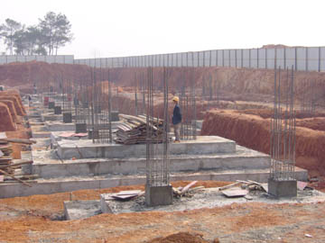 我院雁山校区建设工作自2006年12月15日开工以来,各项工作按计划推进,建设正紧锣密鼓进行。雁山新校区建设工作作为学院“十一五”期间工作的重点,关系到学院两申目标的实现以及学院的发展大计,得到了学院党委、院领导的高度重视和全院师生员工的关注。第一期建设用地1004亩,主要包括1#学生食堂、4#系部教学楼、5#公共教学楼、1-7#学生公寓和道路管线工程等,项目预计于07年9月竣工。由于第一期项目工程任务重、时间紧,雁山校区建设指挥部的全体同志寒假期间坚守岗位,克服困难,严格把好工程进度关、质量关、安全关,力争高质量高水平完成建设任务,确保如期启用新校园。目前1#学生食堂、4#系部教学楼、5#公共教学楼已完成土方、基础工程,学生公寓楼工地全面开挖,道路管线工程施工招标工作也已结束,并于年后立即开工建设,为确保9月份投入使用奠定了基础。