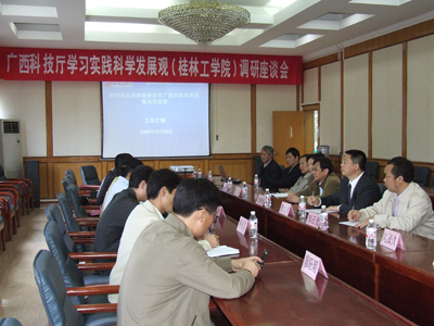 10月27日上午8:00,自治区科技厅蒋和生副厅长带队到我院召开广西科技厅学习实践科学发展观(桂林工学院)调研座谈会。随行的还有科技厅办公室主任袁煌、发展计划处副处长陈丹、桂林市科技局局长林业江和副局长钟可安等领导。我院院长赵艳林、党委副书记张学洪接待了蒋副厅长一行。学院有色金属及材料加工新技术教育部重点实验室主要成员及学院材料学有关专家参加了座谈会。 蒋和生副厅长首先介绍了广西科技发展基本情况和在全国范围内存在的差距,说明了此次调研的目的是按照开展深入学习实践科学发展观活动工作部署要求,围绕广西实施科学发展科技三年计划主题,深入到各地开展调查研究活动,尤其是到高校对高校的科研情况和研究资源进行摸底,以便为广西科技发展的科学决策奠定基础。他希望专家们对广西科技发展献计献策。 赵艳林院长代表学院对科技厅一直以来对我院科研工作的重视、支持和科技厅到我院调研、指导表示感谢!他介绍了学院近年来的发展情况,尤其在教育部重点实验室和教育部工程中心等高层次科技平台建设上取得了很大的成绩,希望科技厅能对学院的科技发展、尤其是教育部重点实验室和工程中心给予更多的支持,也表示高校一定会不负众望,为广西的经济社会发展做出重要的贡献。 有色金属及材料加工新技术教育部重点实验室桂林工学院分室主任方亮教授向领导们介绍了重点实验室研究的方向、优势和建设以来取得的成就和为广西经济做出的贡献,展示了重点实验室的研究设备,还提出了围绕广西经济发展开展研究的工作设想。 随后,蒋副厅长一行还到有色金属及材料加工新技术教育部重点实验室进行了考察。